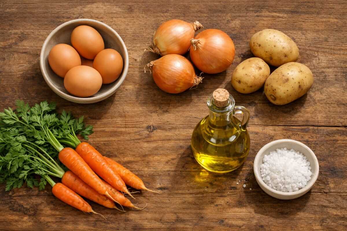 Fünf Grundzutaten reichen dafür. Nicht als starre Liste, sondern als Orientierung. Du kannst sie anpassen, erweitern oder variieren. Aber mit Eiern, Zwiebeln, einer Sättigungsgrundlage, haltbarem Gemüse sowie Fett und Salz hast du die Basis für fast jede Mahlzeit – ohne Planung, ohne Stress, ohne leeren Kühlschrank.